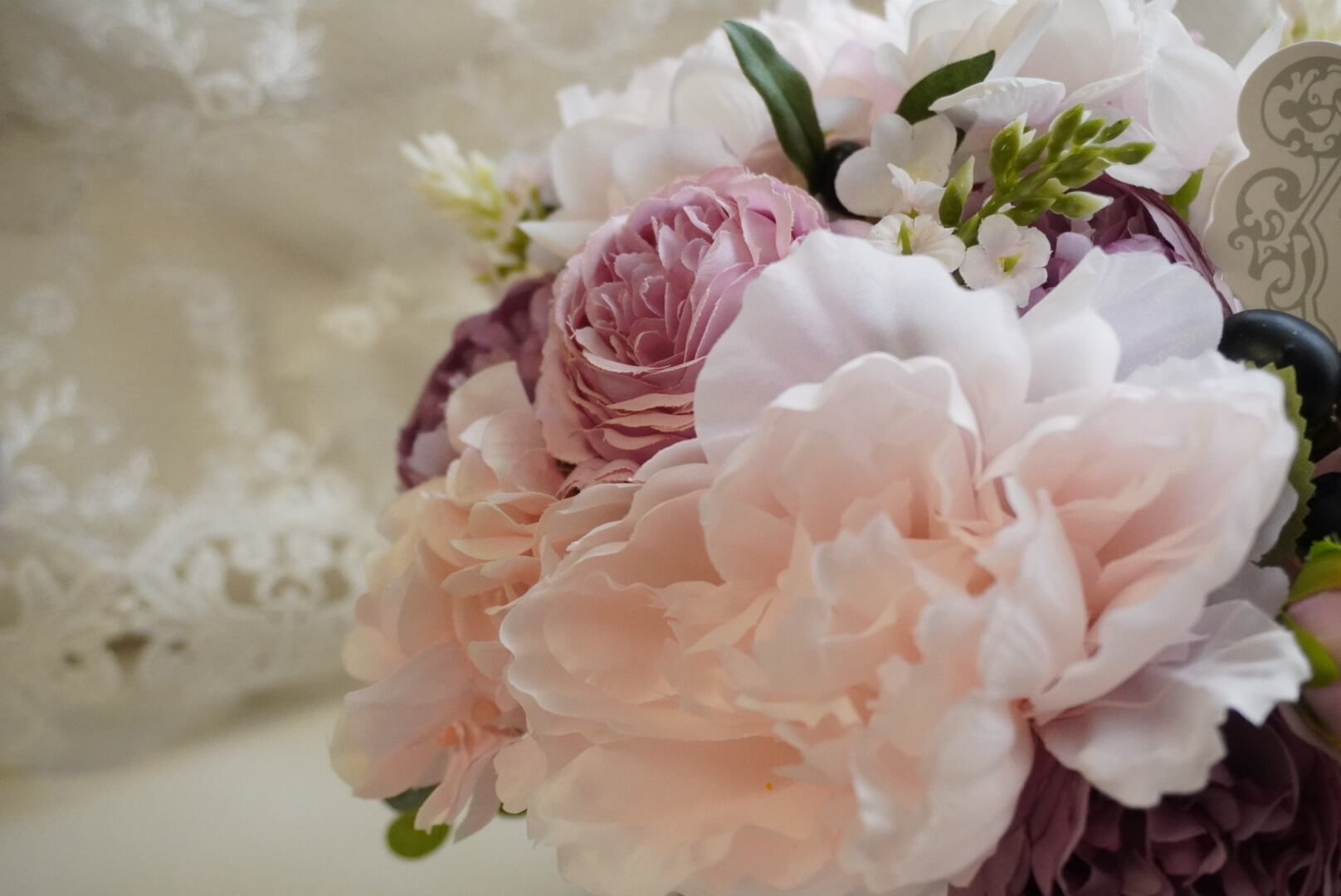 上質なアーティフィシャルフラワー(造花)を使用しております。お手入れ不要。大輪の芍薬が華やかで落ち着いたアレンジです。